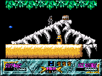 If you open a chest to find a suit of armour, you will be blessed with a mega-weapon, such as flares (no, not flare armour trousers), lightning or a “wall of death”, depending on the weapon you currently have. You begin in the graveyard at the edge of the town, as in the first game, but take a different route through the underworld, passing guillotines, swamps, giant skeletons and deserted windmills to name but a few. At the end of each area is a large and fearful guardian creature, which requires a number of blasts before it dies. Once it has been despatched to its evil source it leaves a key for access to the next level of the underworld.