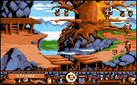 In a doff of the hat to Psygnosis' Lemmings, Gobliiins three characters have their own individual abilities and strengths. Asgard is the beefy-looking one who, naturally enough, is good at hitting things and using his strength to climb up ropes. On the other hand, Ignatius is a weedy magician who can cast spells on almost anything, but cannot predict the results. Completing the trip comes Oups, sporting a stylish bobble hat atop his bonce, and who can collect and use the various objects scattered about each screen. By manipulating all three, in turn, the player has to use their individual abilities to solve the game's many puzzles, red herrings and traps.