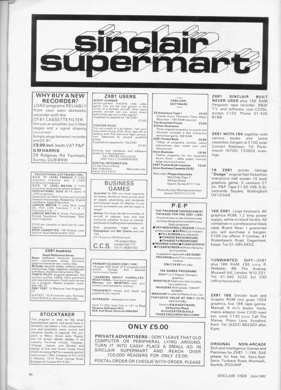 | Digital Integration Simulator / Flight Rod J. Swift 48K 1 Kempston, Interface 2, Cursor Eng N/A Audio cassette Europe (£6.95) Advertisement Later this title was reduced in price to £1.99.