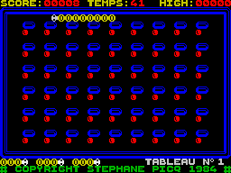 | Publisher: Genre: Author(s): Minimum Memory Required: Maximum Players: Joysticks: Language: Media Code: Media Type: Country of Release: Comments: | ERE InformatiqueArcade S.P. 48K 1 R Fre N/A Audio cassette Europe | Sinclair ZX Spectrum |