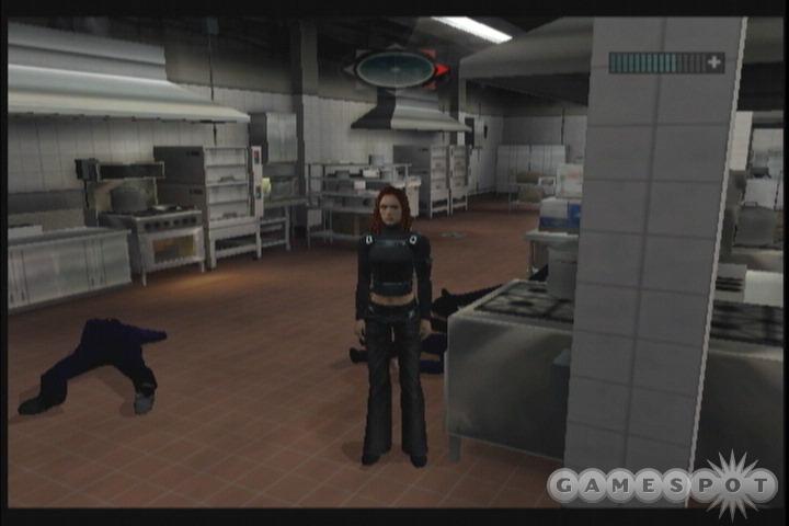 Occasionally, the game uses a unique cinematic split-screen view, showing you when a enemy or guard is doing something. This alerts you of incoming danger. Much like other spy games, you are equipped with a variety of gadgets. Each level varies in which devices you have depending on what the mission calls for. However, you are usually told when and what gadgets you need to use when you do, so you really never have to experiment. While there are a variety of firearms you can use to slay your foes, you’re often forced to use hand-to-hand combat. Fighting consists of pressing either A or X. Pressing them multiple times results in executing combos. The fighting, however, feels very clunky. By pressing B next to certain objects, you can grab and use assorted items as objects, such as pots, pans, wine bottles, and many other things. You pretty much need to use weapons in order to knock out your enemies, because hand-to-hand takes forever, especially if you’re ganged up on. However, you’re never really presented with any challenge in this game. This is mainly thanks to the dim-witted A.I. There were times that I was standing in a light room, with a guard facing right towards me, and he didn’t even notice me. I guess villains will hire anybody these days. Even when holding high-powered weaponry, they seem to hesitate to attack you. And, for some strange reason, Sydney seems to have the ability to regenerate her health, Wolverine style. Alias has moments when you need to hack computers, but since the hacking is a simple bout of “process of elimination,” it proves practically no challenge.
