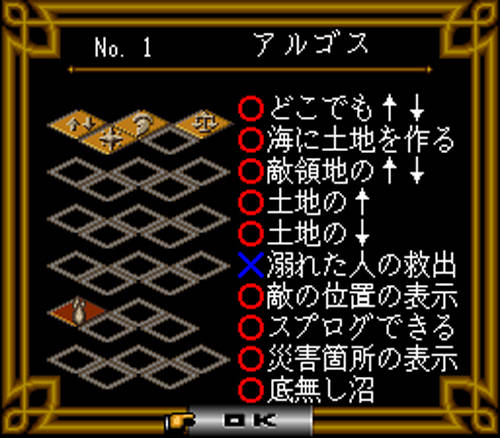 | Publisher: Genre: Author(s): Musician(s): Maximum Players: Joysticks: Language: Media Code: Media Type: Country of Release: Related Titles: Comments: | ImagineerStrategy Infinity, Peter Molyneux Kazuo Sawa Yes Eng SNSP-PL Cartridge PAL Populous | Nintendo SNES |