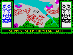Keeping up the strengths of your forces isdone by moving supplies from your port (when the supply ship has docked) to where they are needed using your 4 supply units. If a unit fails to receive supplies in time it will be lost for good.