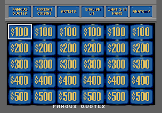 No reviews have been submitted for the Sega Mega Drive version of Jeopardy! Deluxe Edition. Why not be the first?