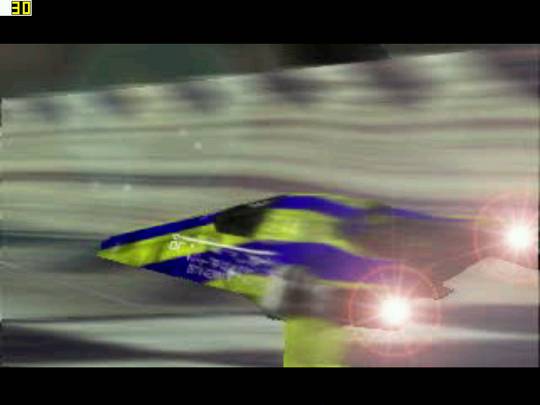 Wipeout features some of the fastest racing action you will ever see in a console game. You'll be zooming around the tracks and notice that the background stuff is just a blur. Thankfully, the sense of speed in this game is fantastic. The first time I played it, it was like being on a roller coaster thanks to the sensational sense of speed in the game. Wipeout added something that F-Zero lacked which made it stand out just a little bit more: the use of weapons. The weapon use in this game is kept pretty simple. You drive over a lighting effect-filled colored star, and get a weapon that corresponds with the color of the star. You've got your standard variety of missiles, rockets, shields, and the like. How and when you use these weapons will determine, in part, how well you do in a race. If you use a weapon at the wrong time, you'll run the risk of inadvertently screwing yourself over, and that is never good. Thankfully, a little bit of trial and error goes a long way in this game. After a few races in which you'll make a mistake here and there, you'll get the hand of how and where to use the weapons, and then you'll be set.
