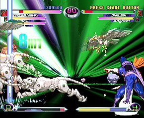 As far as the sound goes, I have no problem with it. It is fast paced music which best suits the mood of the game. I’ve heard people complaining about the jazz and whatever that was used for the soundtrack…and well, who cares? It sounds great. Let me put it to those people this way, would you like to have the Final Fantasy soundtracks in here? How about listening to the Final Fantasy 8 opening theme when you’re in the middle of opening a can of 100% pure Whoop-ass on Gouki, Cable, and Juggernaut? While the music is not the best I’ve heard in a game, it is very upbeat and funky. Capcom did a good job on the music, that’s all I ask for.