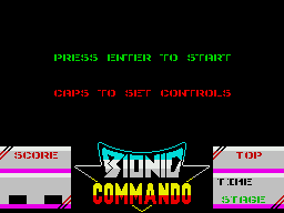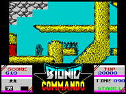 Fresh from the arcades, our bionic commando is all set to make history on the Spectrum. Complete with his superhuman grappling arm, he must negotiate dangerous enemy territory in order to infiltrate the opposition's base and deactivate its missiles.