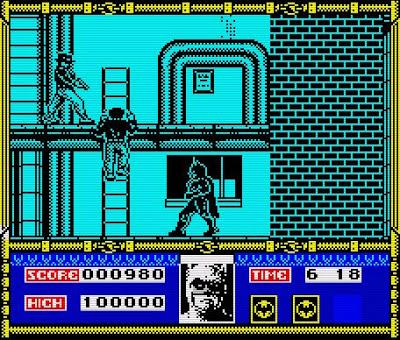 The Joker has taken refuge on the roof. Using his Batrope, the Caped Crusader must climb to the top of the tower, fighting off cops and The Joker's men, to reach the villain and put paid to him. I'm a great Batman fan, and not disappointed! Jack Nicholson's movie performance as the psychotic Joker is ably matched by the pixellated stand-in and the Batman sprite is no slouch either. Go with a smile and get this extravaganza (probably better than the film!).