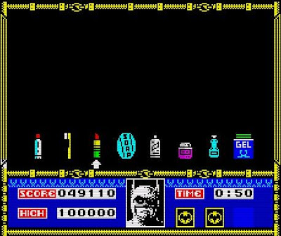 And on: In his Batwing our hero must save an unsuspecting crowd from The Joker's Smilex poison about to be unleashed from overhead carnival balloons. The wingtips must cut the balloons' mooring ropes. Success crashlands poor old Batman into the climactic last 100 screen level in the cathedral.