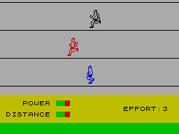 | Publisher: Genre: Author(s): Minimum Memory Required: Maximum Players: Joysticks: Language: Media Code: Media Type: Country of Release: Comments: | Buffer Micro LtdSport / Olympics David M. Webb 48K 1 Kempston, Interface 2, Cursor Eng N/A Audio cassette Europe (£5.50) | Sinclair ZX Spectrum Amstrad CPC |