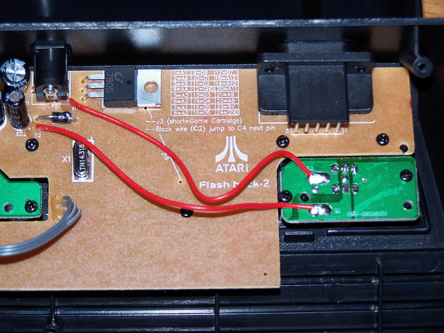 You will move the Black wire from IC2 to the other side of C4, then at J3 you'll need to add a jumper. I recommend you buy a single pull, single throw (SPST) Toggle switch and wire it across J3, this will allow you to enable/disable the onboard ROM chip. For the IC2 C4 connection a 3 way switch wired to the black wire on the common and one wire to the original location and an additional wire to C4 will allow you to switch from the original wire run to the C4 run. You'll need to drill open 2 holes for your two toggle switches. Its some extra work, but worth it since you'll be able to continue using the 40 built in games and then switch to using cartridges when needed.