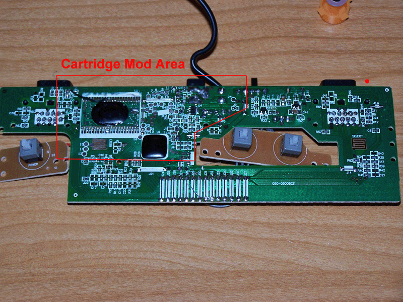 This is the area we will be focusing on. This area of the board is where all of the connections and mods will take place to allow the use of real cartridges on the system.