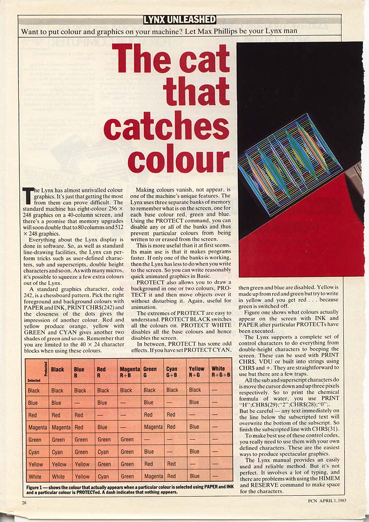 The Cat that Catches Colour (Page 1 of 2) - PC News, April 1983