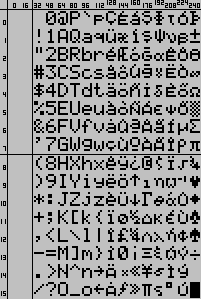 The Psion Printer II character set is based on a 7 by 5 array of dots as shown in the table overleaf. To get the character code, multiply the column number by 16 and add the row number. For example, character 'X' has code 5*16+8=88. (The image below has different numbers in the columns to the picture in the manual. Simply add the two numbers without multiplying by 16. -Jaap)