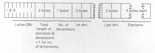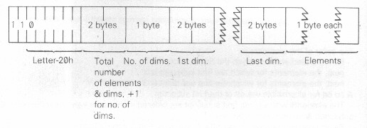 | DIM α(n1,...,nk) | Deletes any array with the name α, & sets up an array α of numbers with k dimensions n1,...,nk. Initializes all the values to 0.