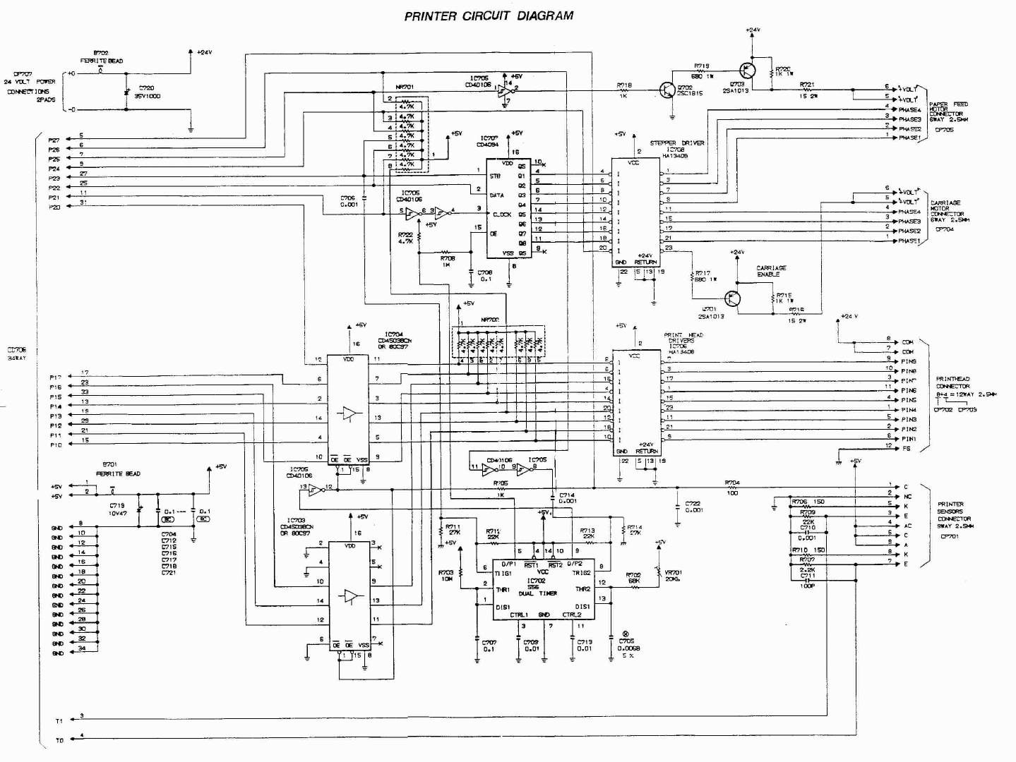 Amstrad PCW Printer board Circuit Diagram