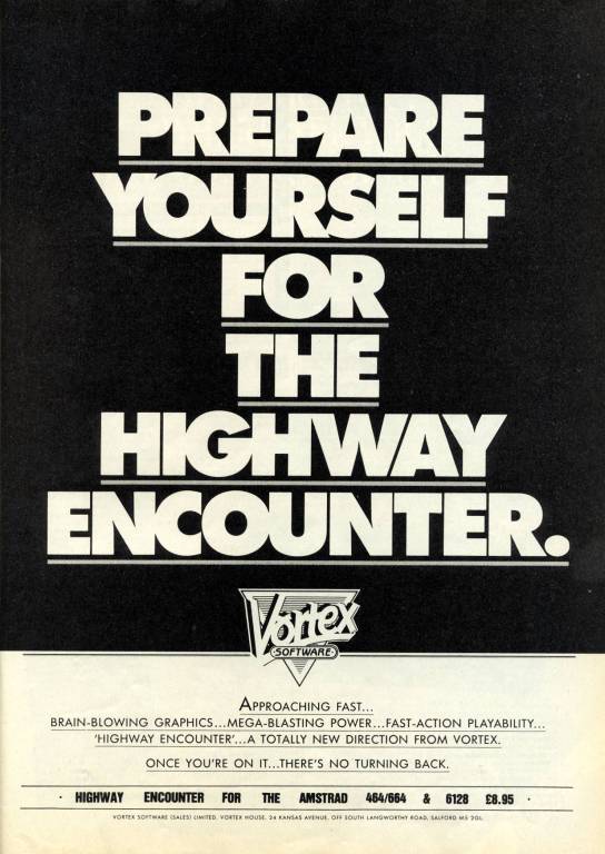 ![]() | Highway Encounter Publisher: Vortex Software Released: 1985 Platform: Sinclair ZX Spectrum |