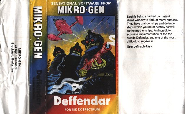 ![]() | Deffendar Publisher: Mikro-Gen Ltd Released: 1984 Platform: Sinclair ZX Spectrum |