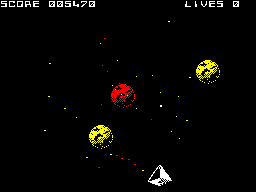 | Publisher: Genre: Author(s): Graphics Mode: Minimum Memory Required: Maximum Players: Joysticks: Language: Media Code: Media Type: Country of Release: Comments: | Martech Games LtdAsteroids clone Simon Nichol, Jason C. Brooke 64K 1 Yes Eng N/A Audio cassette Europe | Click to choose platform: Acorn BBC Amstrad CPC Commodore 64 |