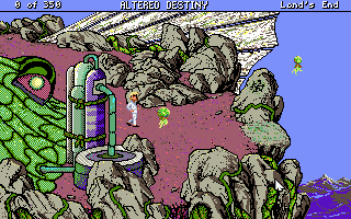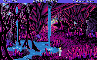 The graphics are decent and drawn in a fresh cartoon like way with nice looking colors. They pale in comparison however to the aforementioned Kings Quest V, which has a much richer color palette and more detail. Compared to a lot of other titles from the same year, Altered Destiny seems to be in the upper mid-section.
