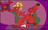 The graphics are pretty dreamy, with six different scenes comprising of scores of varying zones. Junior can interact with some backgrounds by bashing them with the club and move rocks across the screen. This enables the youngster to move boulders over spikes and get over obstacles unharmed. There are quite a few surprises in store for the adventurer, with nice graphical touches including cavemen dressed up in dinosaur suits that disrobe as they get hit and huge walking dinosaurs that take up most of the screen.