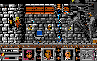 Flash is promptly teleported into Ming's fortress, armed only with a pistol. The fortress is a horizontally scrolling maze viewed side-on, with flickscreen scrolling on the C64. Flash must find Ming's throne room to save the children. On the way Flash has to kill loads of baddies. On the Amiga special superbaddies - one like ED 209 - are summoned if Flash crosses a field generator.