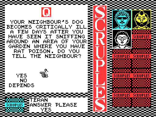 No reviews have been submitted for the Sinclair ZX Spectrum version of Question of Scruples, A. Why not be the first?