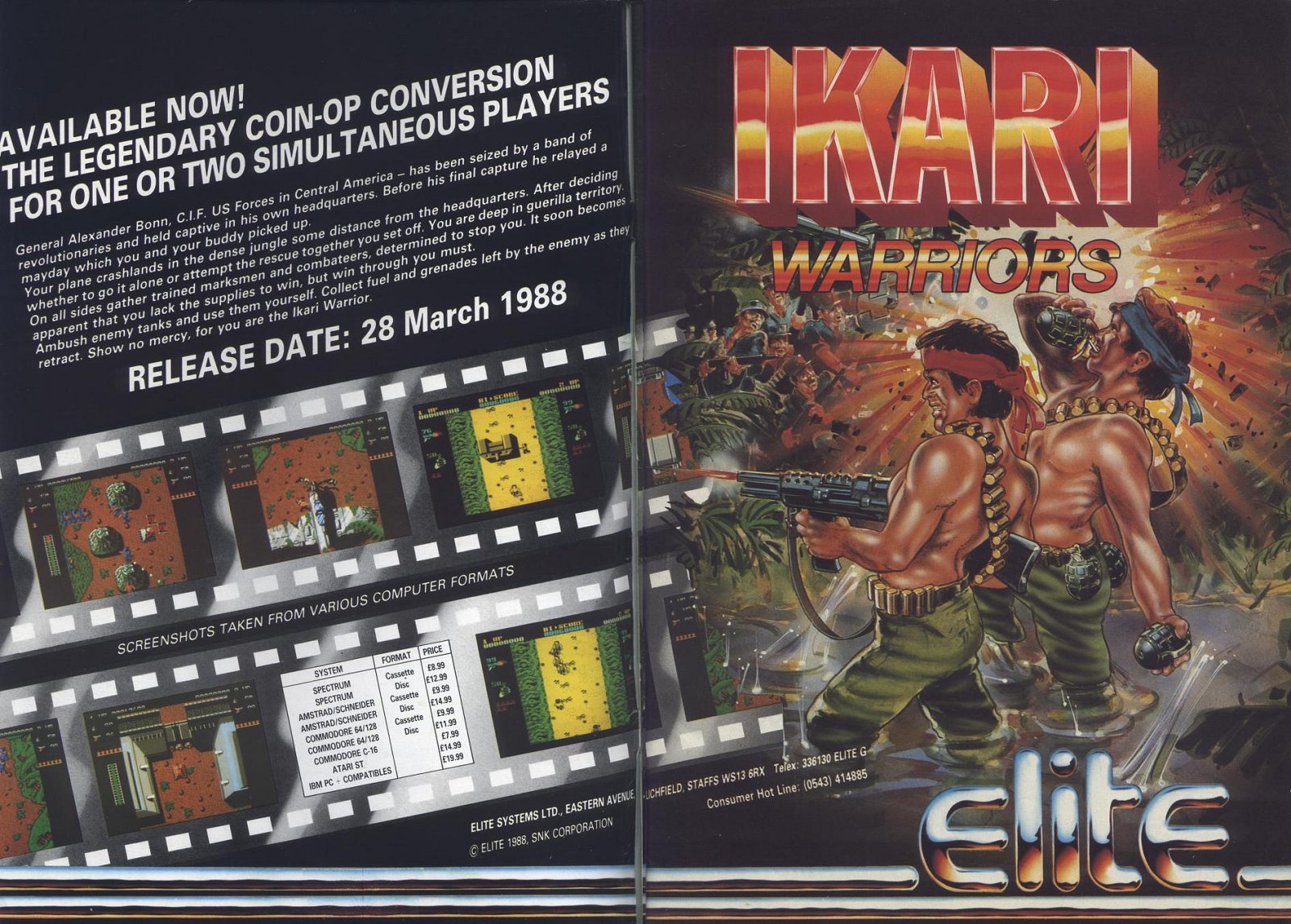 Remember Commando? lt was released years ago, but it's still one of the best coin-op conversions around. Well, Ikari Warriors is the much-rumoured sequel, which has finally appeared after months of anguished waiting for all the other versions to be finished.