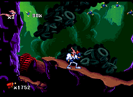 The lifespan is actually pretty good, the lack of a password system hurts but does not completely demolish the long-term playability of Earthworm Jim. There's enough variety and mirth offered by the game to keep the player coming back repeatedly for a fair amount of time, there's a lot of various hidden shortcuts to uncover and a good bit of time can also be spent performing this task. There's a surprising amount of depth here for a platformer and should take up a fair bit of your spare time before you finally tire of it and say seeya' later to the cartridge for good.