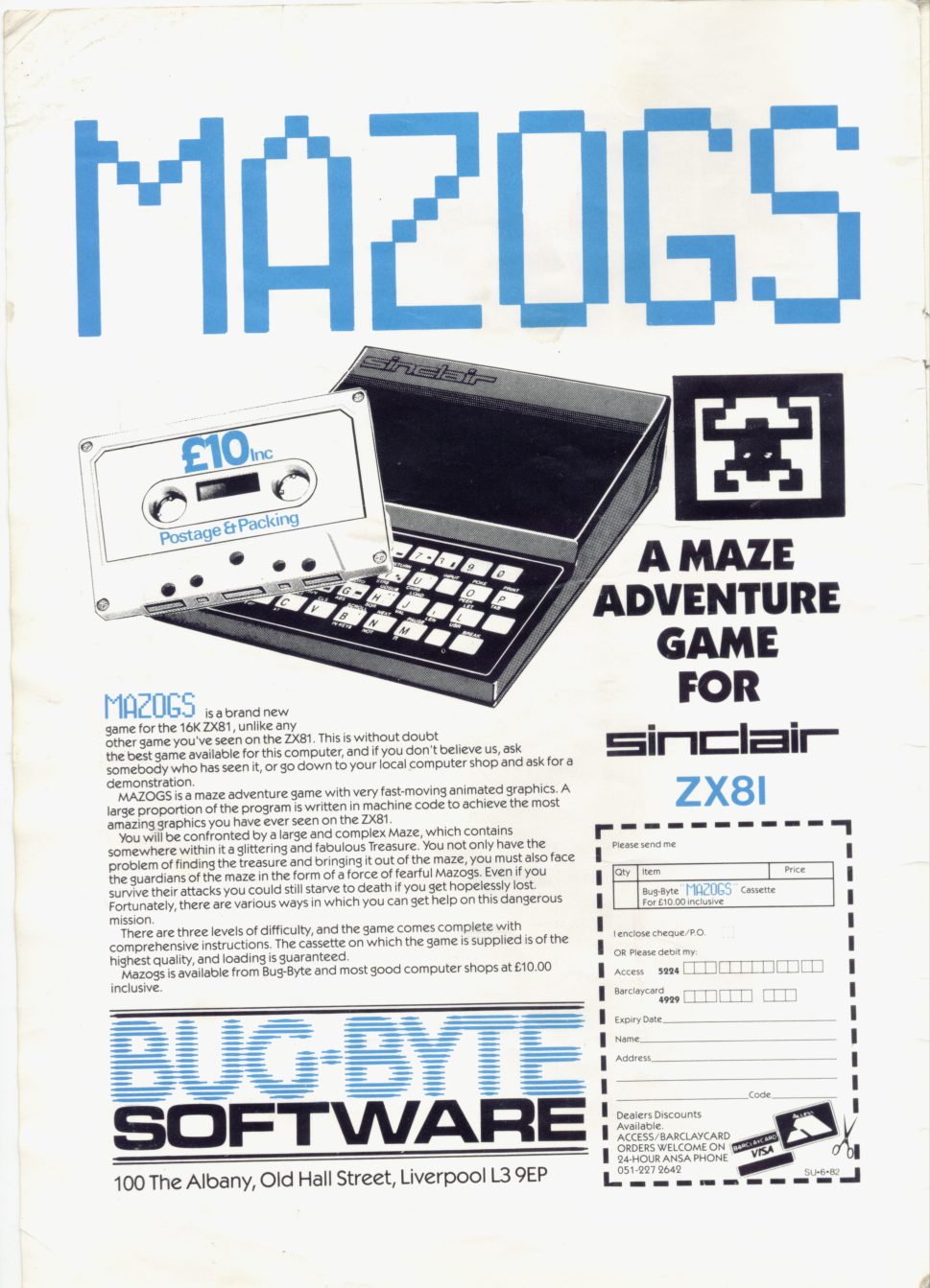 Seamus Doyle (Sligo ) 8th Mar 2015 09:16Mazogs was the first game I purchased when I fitted a new 16k ram pack to my Zx81.