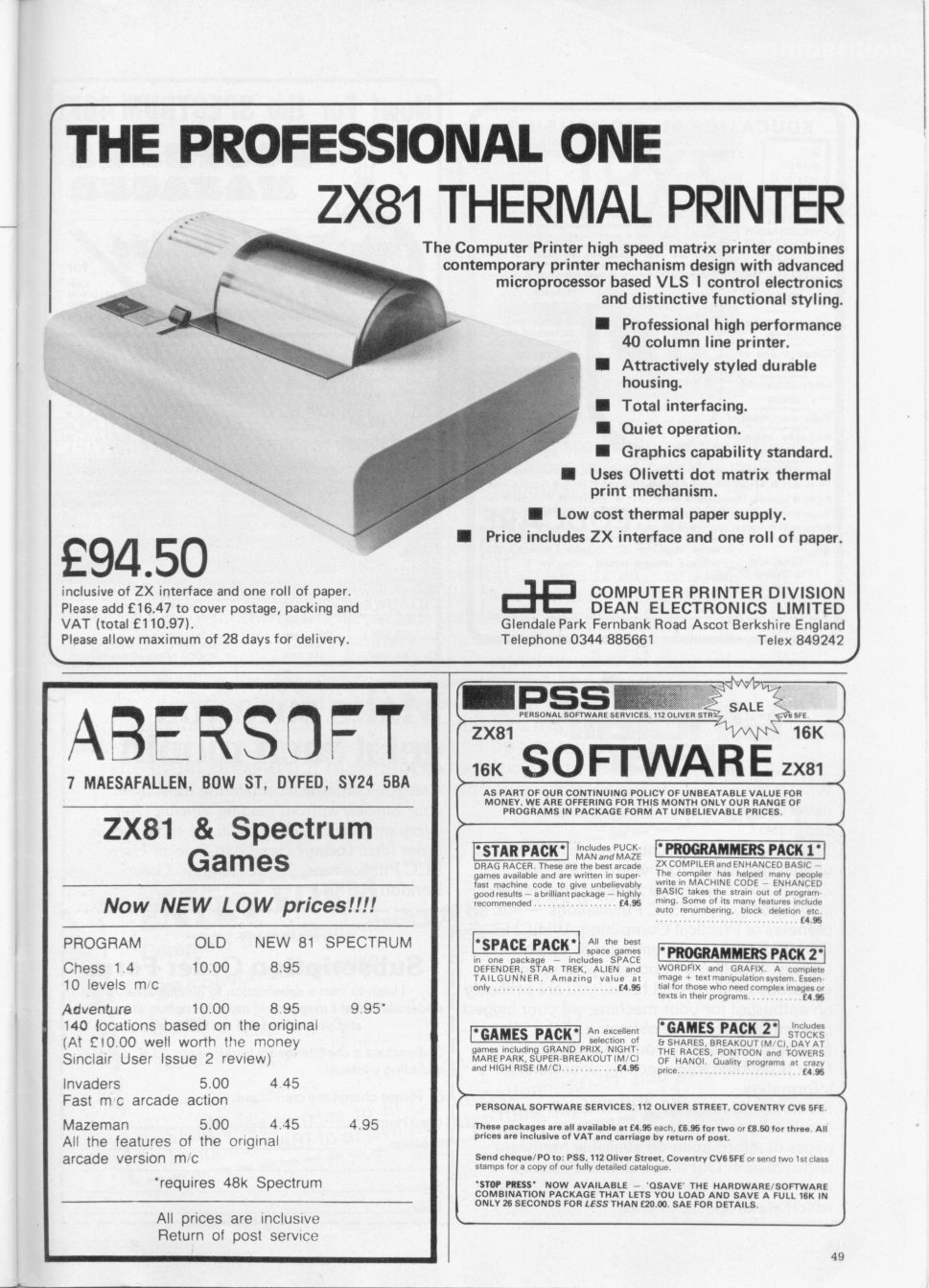 | Publisher: Genre: Author(s): Minimum Memory Required: Maximum Players: Joysticks: Language: Media Code: Media Type: Country of Release: Other Files: Comments: | PSS Adventure PSS 16K 1 No Eng Audio Cassette UK Advertisement | Sinclair ZX81 More from other publishers: Amstrad CPC Commodore VIC-20 Commodore 64 Sinclair ZX Spectrum Sinclair ZX Spectrum |