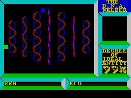 That is taken into the machine and the game, which takes up two sides of a cassette tape and an audio soundtrack, starts in which you must create a lifeform within the machine. You can take that lifeform, if it survives, from birth through middle age to old age, playing a series of weird games. Those make more sense when you listen to the soundtrack and realise that author Mel Croucher is trying to put a series of complex political, philosophical and theological points across.