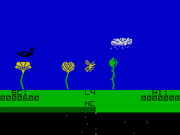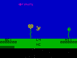 On a screen which scrolls left and right, you must pilot your bee from flower to flower, picking up pollen to earn yourself points, and avoiding hostile birds and centipedes. The more pollen the bee picks up, the heavier it becomes, making it increasingly easy prey for the birds. There is also a limit to the amount of pollen it can carry, so that it has to make periodic trips to the hive to shed its load.
