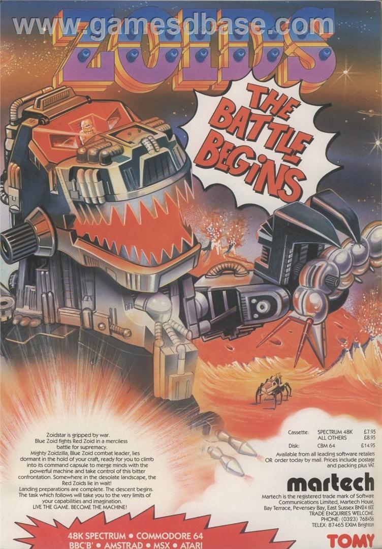 'Zoids is simply the best game I've played on the Spectrum. There are games with better graphics, better sound and ones which have amazing features, but this one with the sheer depth of game and fabulous on-screen presentation, overshadows them all. The objective of the game seems pretty simple, but actually achieving the task requires a combination of arcade skills and strategy. After playing the game all morning I found myself still discovering aspects of gameplay that I'd overlooked completely. The program offers a huge challenge, but the task it throws down is by no means an impossible one, it just requires a lot of learning and experimentation. Unlike most games the reward for finishing is one which makes the game well worth persevering with. The graphics are excellent, with an amazing windowing system and excellent 3D when you have to guide a missile to its target. Zoids is a game not to be missed.'