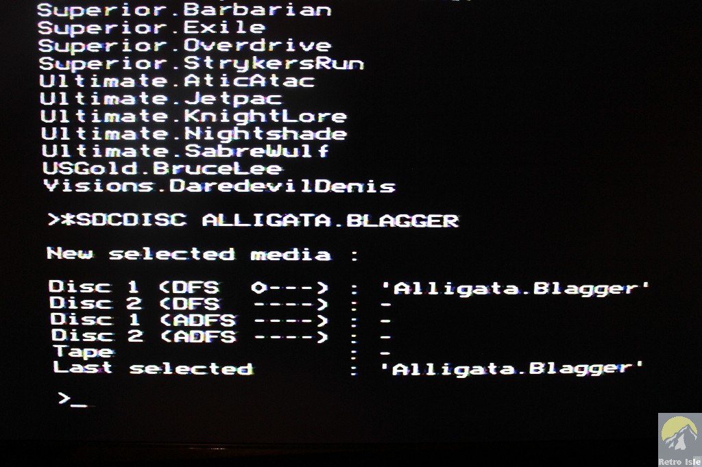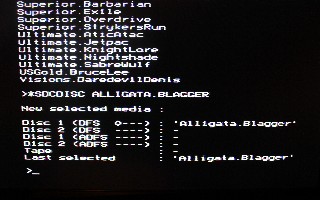 Alternatively, typing *SDCLIST will display a list of all disk images on the card. Typing *SDCDISC "<disk image name>" then inserts that disk, e.g. *SDCDISC "Acornsoft.Elite"