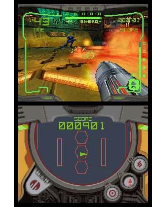 The bundled demo version of Metroid Prime: Hunters might even win a few older converts. It's a convincing - if slightly pixelated - 3D shooter, and it happens to have a fantastically usable control system. You use the stylus to aim, the control pad to move and strafe, the left shoulder button to fire and some additional buttons on the touchscreen to switch weapons and jump. Link up two, and it's a makeshift, pocket-sized LAN party.